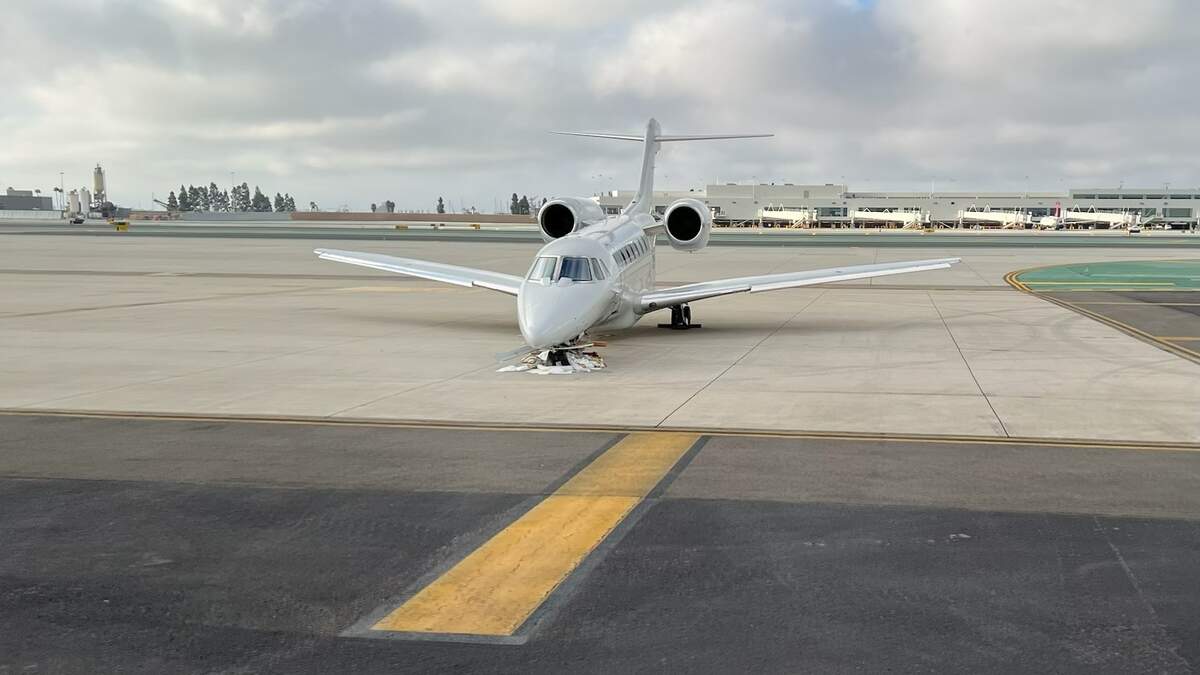 Small jet that had a damaged nose gear that forced closure of San Diego International's lone runway Wednesday September 17, 2025.