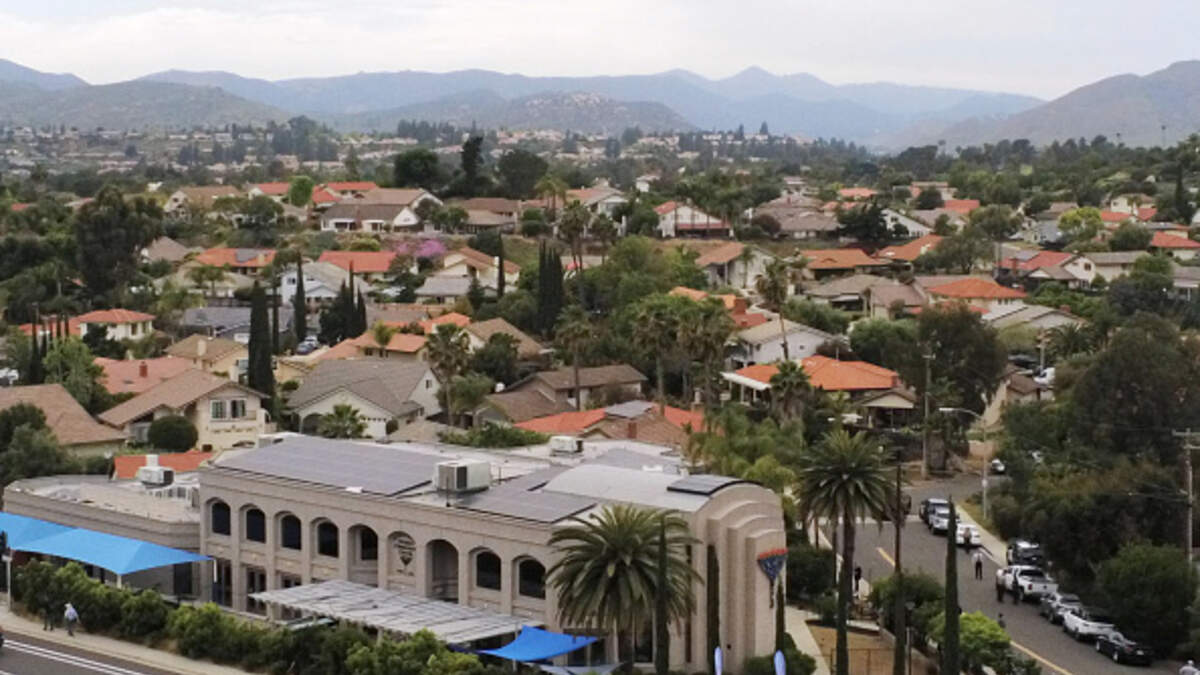 This aerial view shows the Chabad of Poway Synagogue in Poway, California on April 28, 2019, a day after a deadly shooting there. - A rabbi who carried on preaching despite being wounded in the latest deadly shooting at a US synagogue said on April 28 thaPhoto: AFP via Getty Images